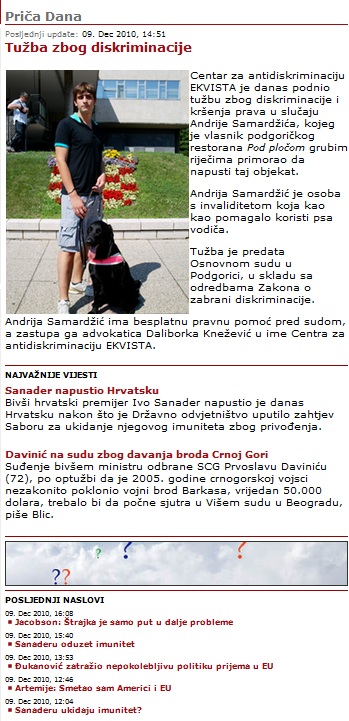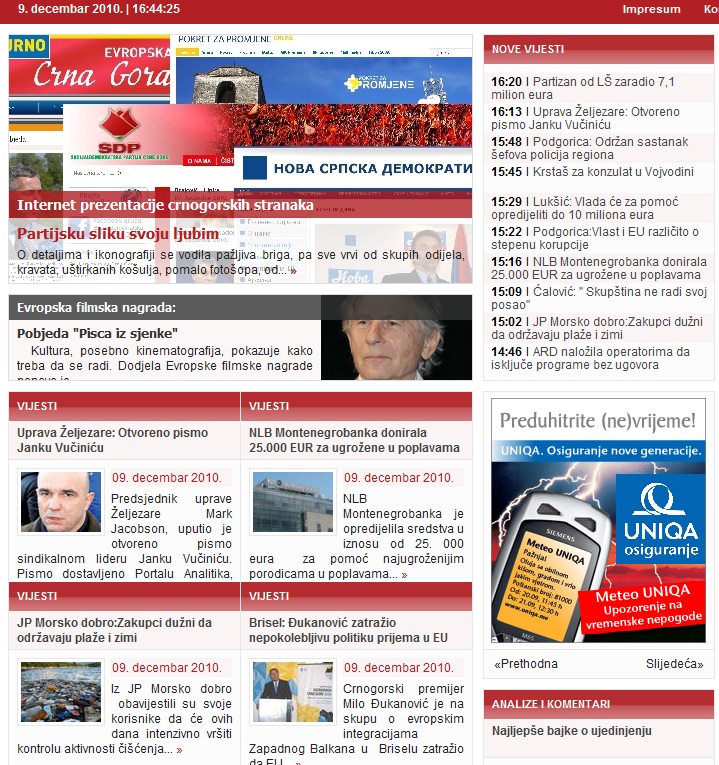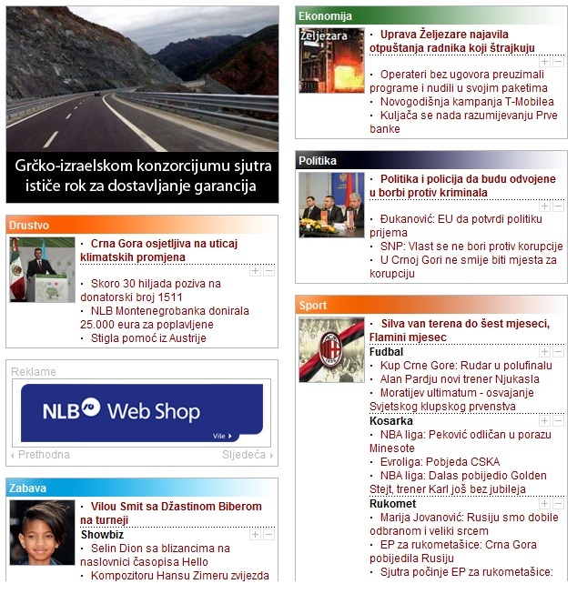 Neđe jedan članak, neđe nijedan. Slijede screenshot-ovi naslovnih stranica nekoliko internet portala bez dodatnih komentara. . .