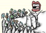 Uz stvarne luđake, postoji i strašno puno ljudi koji vjerojatno samo ne razmišljaju o tome: oni jednostavno apsorbiraju poglede voditelja vijesti koji kažu: “Gospodarski rast, dobar; gospodarske stagnacije, loše.” I naravno, ako vam je više stalo do gospodarskog sustava, nego do života na planetu, to je istina. Međutim, ako vam je stalo više do života nego do gospodarskog sustava, to nije sasvim tako istinito, jer ovaj gospodarski sustav mora stalno povećavati proizvodnju da bi rastao, a što je, u biti, proizvodnja? To je pretvaranje živih u mrtve, pretvaranje živih šuma u letve, živih rijeka u stajaće bazene za generiranje hidroelektrana, živih riba u riblje štapiće, te u konačnici sve ovo u novac. I što je, dakle, bruto nacionalni proizvod? To je mjera ove pretvorbe živih u mrtve. Što brže se živi svijet pretvara u mrtve proizvode, to je viši BDP. Ove jednostavne jednadžbe komplicira činjenica da kada BDP ide dolje, ljudi često gube radna mjesta. Nije ni čudo da se svijet ubija.