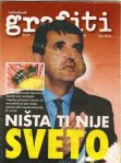 Osa Bin Laden preuzela odgovornost za teroristicki ubod u predsjednika crnogorskog parlamenta Sv.Marovica, sto nam prestavlja jos jedan temeljac spoticanja mlade crnogorske demokratije. No na srecu, nista ti nije SVETO”, Omladinski list grafiti br. 27
