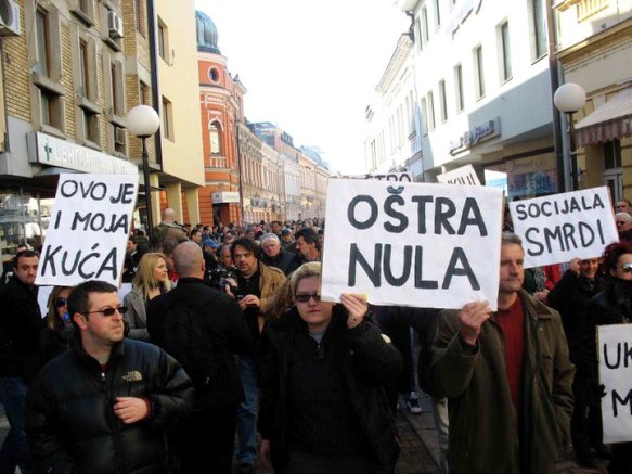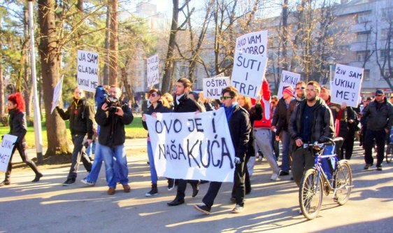 A, ,,realnost“ je  nosila transparente ‘Živ sam, ukini me!’, ‘Dišem, ukini me!’, ‘41 KM socijalne pomoći’, ‘Ovo je naša kuća’, ‘Socijala smrdi’, te ‘Ako vam je dobro, onda ništa’.
