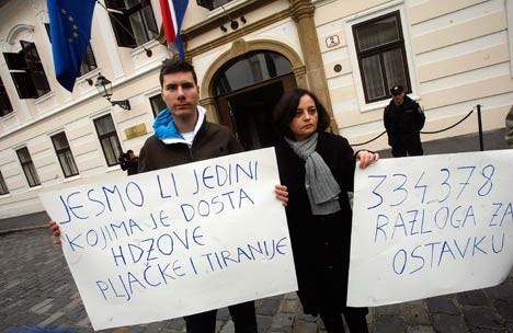 Grupa građana pokušala je u četvrtak kopirati prosvjede protiv vlasti u Egiptu pa su preko Facebooka pokušali organizirati prosvjed na Markovu trgu, ali ih se skupilo svega njih troje, zahtijevajući da Vlada da ostavku, jer za to postoji “334.378 razloga”.