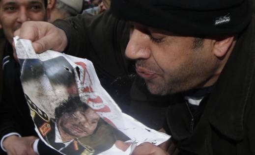 Protesti, koji su se juče proširili iz istočne Libije na Tripoli, danas su nastavljeni tako što su demonstranti na ulicama prijestonice gađali kamenicama plakate sa slikama libijskog lidera Moamera Gadafija, a policija je upotrijebila suzavac u pokušaju da ih rastjera.”Ljudi na ulicama uzvikuju “Alahu Akbar” (Bog je veliki) i bacaju kamenice na Gadafijeve slike. Policija svuda ispaljuje suzavac koji ulazi čak i u kuće”, ispričao je očevidac agenciji Rojters.