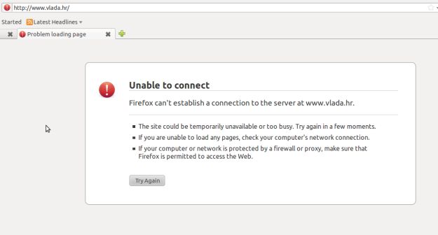 Tako se danas u večernjim satima nije moglo pristupiti internetskim stranicama Vlade na domeni vlada.hr. Poruka koja bi se pokazala je javljala da je stranica Vlade privremeno nedostupna ili ima previše posjeta.