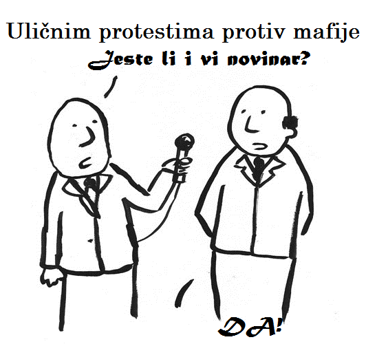 Fejsbuk grupa “ULICNIM PROTESTIMA PROTIV MAFIJE” je ispred Vlade okupila oko 30 novinara, 30 policajaca, 15-ak građana i 15 “organizatora”.