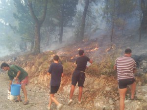 Požar se vrlo brzo širio čemu je doprinio i blagi vjetar, starost stabala kao i sasušena, nenavodnjavana trava. Da vatra dođe do obližnjih kuća sprječavali su mještani koji su u velikom broju gasili kofama, crijevima, kao i ručnim protivpožarnim aparatima. Pomoć od vatrogasaca je stigla neobjašnjivo kasno, više od pola sata je trebalo prvom kamionu da se pojavi na lice mjesta, dok je još jedna od nevolja za uplašene mještane bio i iznenadni nestanak vode.