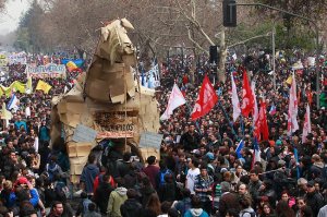 Protestanti, koji se ne slažu sa neoloberalnim modelom sistema obrazovanja, izašli su na ulice pošto čileanski predsednik Sebastijan Pinjera, koji je došao na vlast u martu prošle godine, posle četiri mesesa protesta, i dalje odbija zahteve demonstranata. Organizatori su saopštili da je oko 180.000 ljudi uzelo učešće u maršu, koji je bio najveći po broju učesnika od početka masovnih studentskih protesta.