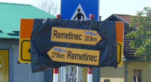 Putokazi za Remetinec s logom HDZ-a postavljeni su u 13 sati na raskrižju kojim se od sportske dvorane ulazi u Ulicu Blage Zadre, te na kružnom toku kojim se u Borovom Naselju odabire pravac za centar, Osijek ili Dalj.
