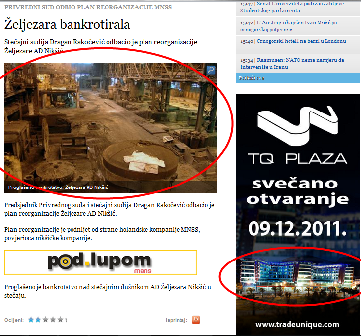 Više od hiljadi riječi: Crna Gora, jedan bankrot i jedna reklama