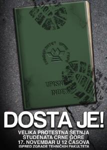 PRIDRUZUJEMO SE NASOM PODRSKOM STUDENTIMA JER SU ONI NAJVECA NADA, ALI I BOGATSTVO CRNE GORE! POZDRAV IZ DIJASPORE I BALSI I STUDENTIMA!