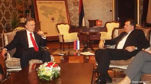 Gledam tako one protokolarne fotografije na kojima su njih dvojica za onim stolićem, na stoliću mala zastavica Republike Srpske, na radnom stolu mali grb Republike Srpske, uza zid pak velika zastava Republike Srpske, na zidu veliki grb Republike Srpske, do grba mapa Republike Srpske, velika Srpska ko Velika Srbija, sve u svemu – nigdje Bosne ni za Bosnalijeka, a Dodik pizdi. Neprocjenjivo.