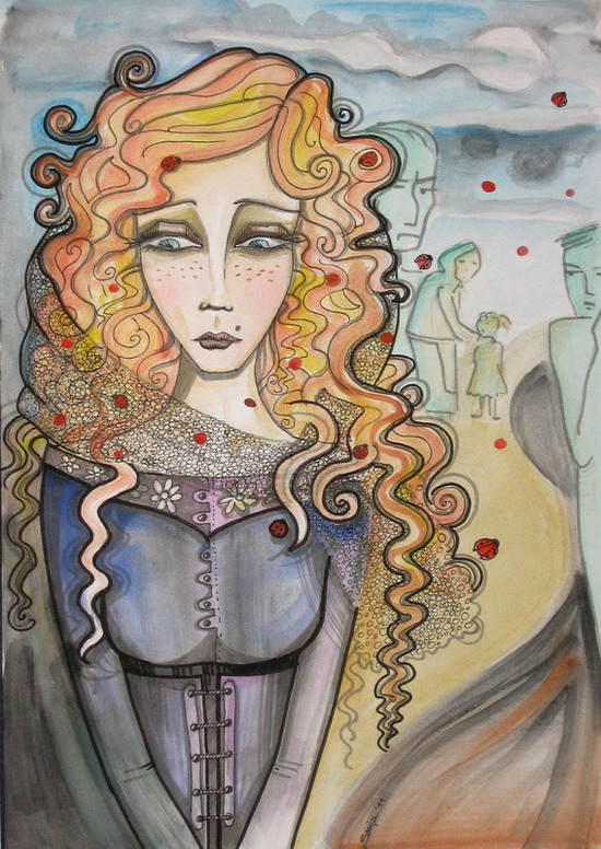 Na neki način – da, stalno. Ono što ne želim jeste da „likovi“ liče na mene ali i to se dešava. Zato što dok ih stvaram oni nemaju lice, oni su tu da bi preneli neku emociju. Nisam nikada o tome ni razmišljala. Sad mi je na pameti, jer od kako su slike po javnim mrežama, čujem često „opet ti“ :D Mada Frida Kalo ima savršenu izjavu na zadatu temu “Slikam sebe jer sam često sama, jer sam osoba koju najbolje poznajem”.