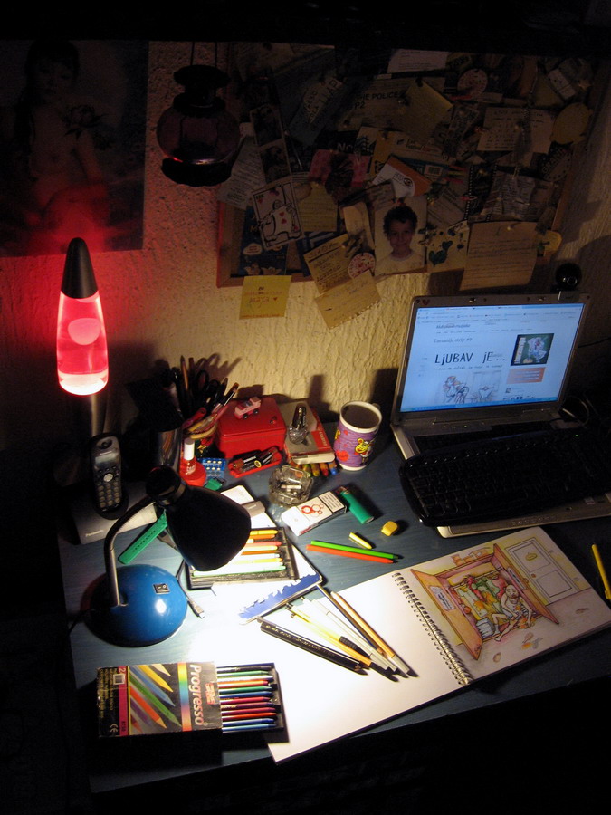 – osnovna škola je donela bojice, prvo drvene (nije postojala lekcija ni iz jednog predmeta koji ja na kraju nisam “ilustrovala” u svojoj svesci, žao mi je što to nisam čuvala), pa vodene, voštane (školske teme) i vrhunac – uljani pasteli. Drečavi bunt. U to neko vreme sam pohađala i školu animiranog filma i uredno crtkala frejm po frejm nekakvih bubica, osica i sličnih slatkosti. U slobodno vreme kopirala SVE. Od poznatih slika do crtanja mrtvih priroda i predmeta oko sebe. Ne možeš razviti svoj stil dok ne prođeš osnove i naučiš da verno preslikaš sve što vidiš onako kako ga vidiš. Bez filozofiranja.