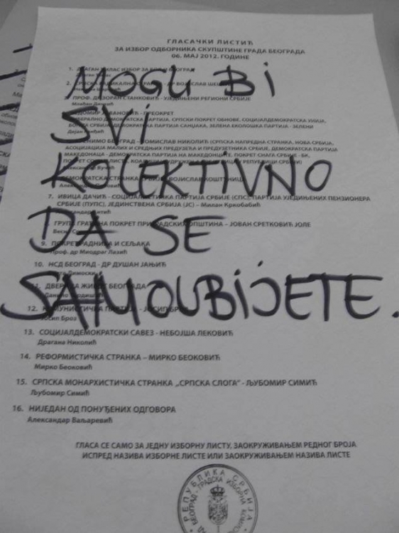 FENOMEN BIJELIH LISTICA… apsolutno dobra intenret kampanja i 4.5% nevazecih listica u srbiji sa ovim kreacijama. Gradonacelnik Beograda je bio jako uznemiren i najvise ljut upravo na “bele listiće”.