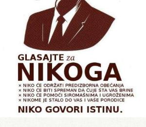 Ovaj portal i svi blogeri i slobodni gradjani treba da predvode gradjansku koaliciju koja će sprovesti kampanju Bijelih lisitića tj glasanja za Nikoga! Zajedno možemo postići da brojka bijelih listića na sljedećim izborima bude oko 5% !