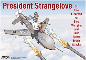 Sledećeg dana, New York Times je objavio dugačak članak koji beleži kako Obama lično bira žrtve svojih napada bespilotnim letilicama širom sveta. On to radi svakog „strašnog utorka“ (terror Tuesday) kada pregleda fotografije na „listi za odstrel“, na kojoj ima i tinejdžera, uključujući „devojku koja je izgledala mlađe od svojih 17 godina“. Mnogi su nepoznati ili jednostavno vojno sposobni. Navođene od strane „pilota“ koji sede ispred kompjuterskih ekrana u Las Vegasu, bespilotne letilice (dronovi) ispaljuju rakete tipa Hellfire koje isisaju vazduh iz pluća i raznesu ljude na komadiće. Prošlog septembra, Obama je ubio državljana SAD, Anvara al-Avlakija, čisto na osnovu glasina da je podsticao terorizam. „Ovaj je lak“ (u smislu, lako ga je odabrati, ‘This one is easy’, prim. prev.), citirali su ga saradnici da je to rekao dok je potpisivao smrtnu persudu tom čoveku. 6. juna, dron je ubio 18 ljudi u selu u Avganistanu, uključujući žene, decu i stare koji su proslavljali venčanje.