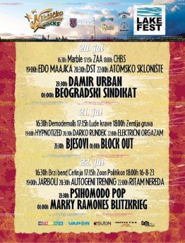 Za dva dana počinje drugo izdanje nikšićkog Lake festa. Poslednji put da podsjetimo da karte koštaju 10 eura po danu ili 25 eura paket za sva tri festivalska dana. Kamp i moto kamp su i ove godine besplatni. Osim rotacije u nastupima Bjesova i Ritma nereda, program je ostao isti.