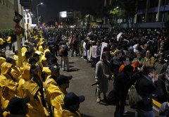 Uzvikujući “Recite istinu”, demonstranti, medju kojima su bili i studenti i radnici, onemogućili su ulazak zaposlenih u televizijsku stanicu, prenio je Rojters.