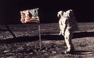 Uz pomoć Baza Odlrina zabo je zastavu SAD u tlo u sred Mora Tišina, gde su se spustili.