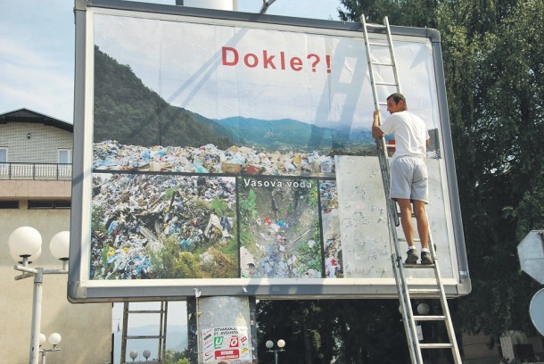 Bilbord američkog državljanina porijeklom iz Berana Jovana Lončara sa fotografijom divljeg smetlišta na Vasovim vodama i natpisom „Dokle”, vraćen je juče na isto mjesto sa kojeg je po nalogu lokalnih vlasti pocijepan prije dvije godine.