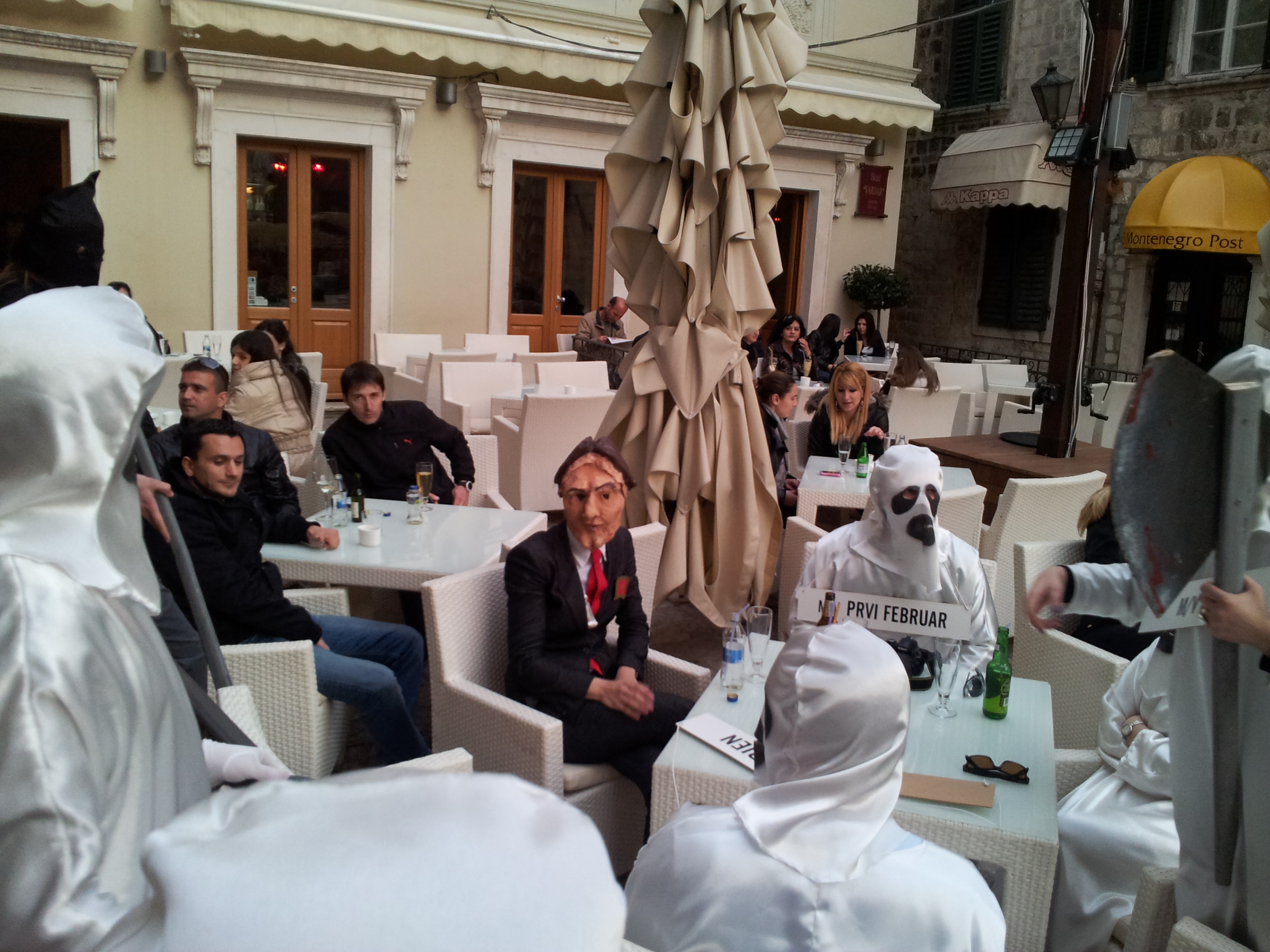 Ranko Krivokapić na kafi ispred “Vardara” objašnjava duhovima kotorske “Jugooceanije” zašto može biti da dželati crnogorske države i crnogorskog pomorstva mogu ujedno biti i kumovi-obnovitelji iste te države i pomorstva i zašto je borba protiv kolektivne aMNEzije “zaludna” i “prljava” rabota direktno uperena protiv male crnogorske države koja gazi velikim koracima. (Arhivski snimak)
