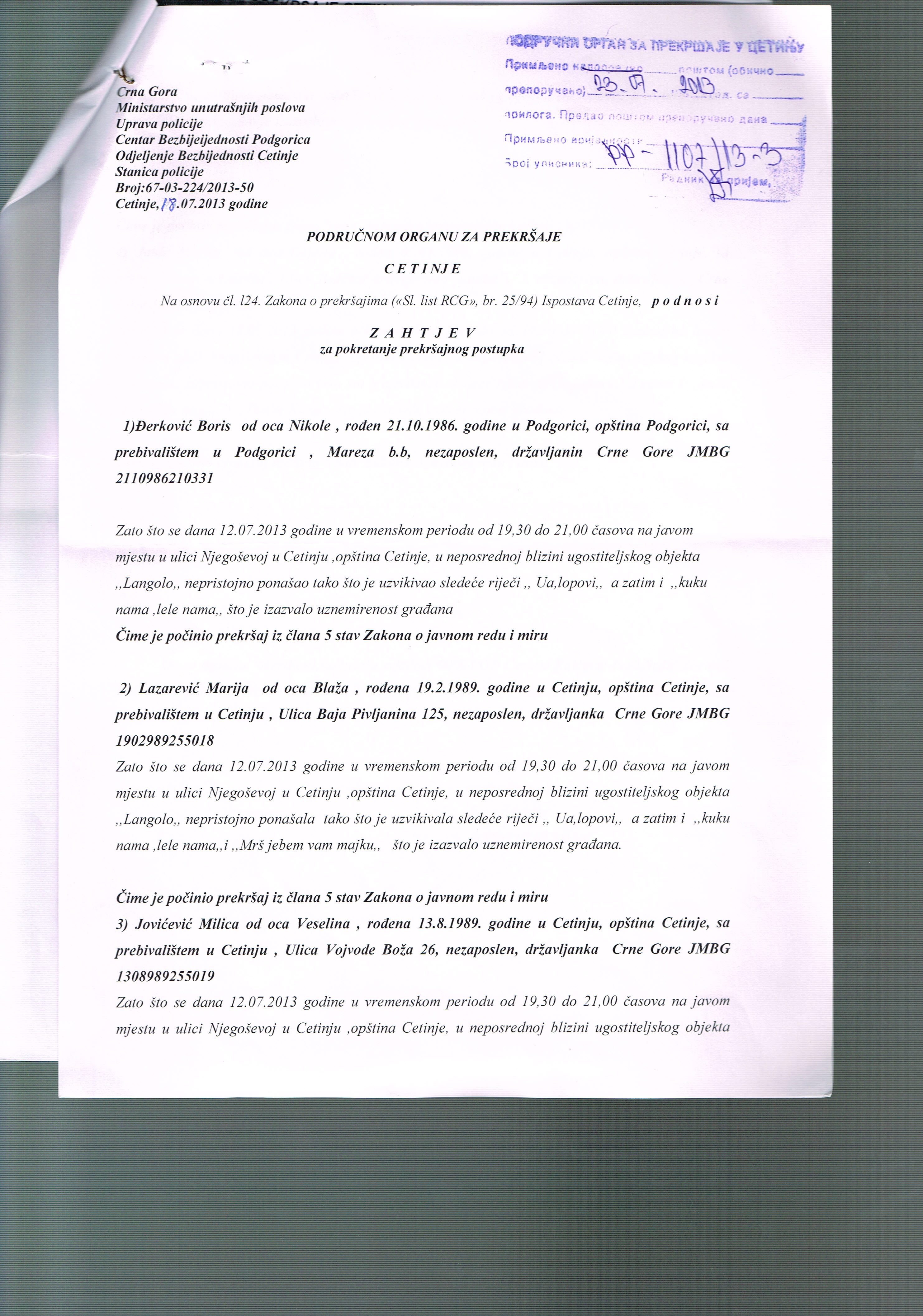 Institucije sistema su još jednom pokazale svu nemoć i umjesto podnijetih krivičnih prijava i kažnjenih nasilnika iz redova policije, rezultat su jutros dostavljene prekršajne prijave protiv nevinih građana i prijedlog sudiji da se ovi nevini ljudi proglase krivima i kazne u skladu sa zakonom.