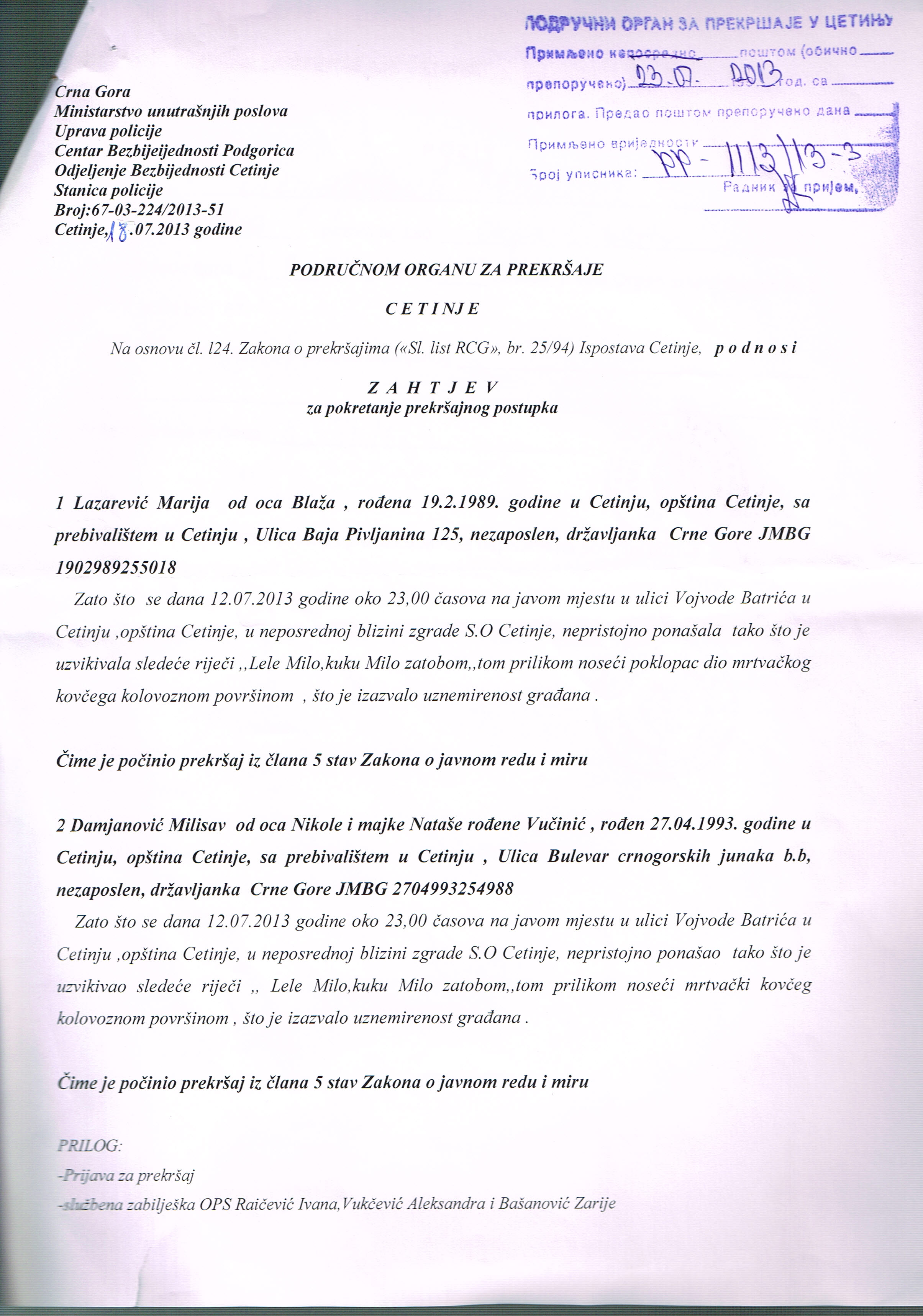 Nakon performansa “sahrana Vlade ” pokreta „UDAR“, održanog na Cetinju dana 12.jula 2013. godine, usljed kojeg su članovi ovog neformalnog pokreta maltretirani, kako verbalno tako i fizički, od strane policijskih službenika cetinjske ispostave uprave policije, napokon je došlo do epiloga pomenutih događaja.