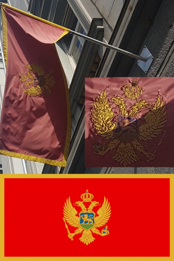 Ponukan tom velikom greškom koja je obišla svijet, kolega novinar iz Zagreba nam je poslao fotografiju na kojoj se vidi pogrešna zastava i ispred ambasade Crne Gore u Hrvatskoj. Naime, orao, shodno nespornim istorijskim faktima i zakonu, u desnoj kandži drži skiptar, a u lijevoj šar, dok je na zastavi u Zagrebu obratno. U lijevoj šar, a u desnoj skiptar. Da ne ulazimo u samu boju zastave, prenaglašene konture grba i zakonom propisanu razmjeru.